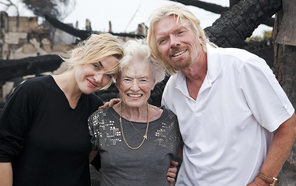 Устроив у себя на вилле на личном острове в Карибском море большой светский прием, Брэнсон и подумать не мог, что не самый сильный тропический шторм приведет к пожару. Посреди ночи, когда все гости были при параде и вовсю развлекались, молния ударила прямо в основное здание, загорелась проводка, и в считанные секунды огонь объял крышу и верхний этаж виллы. Перепуганные гости стали поспешно покидать здание, спасая себя и свои вещи. Во всеобщей панике сам миллиардер, что уж говорить об остальных, совсем забыл о прилетевшей к нему накануне 90-летней матери, находившейся как раз на втором этаже виллы! Пожилая женщина не могла самостоятельно передвигаться, да и к тому же на момент начала пожара спала. Вспомнил Ричард Брэнсон о ней слишком поздно. Точнее, было бы поздно, если бы не отважная Кейт Уинслет, которая последней вышла из горящего здания. Получив небольшие ожоги и наглотавшись дыма, актриса вынесла на собственных руках мать Брэнсона. Теперь один из самых успешных предпринимателей мира в бесконечном долгу перед Уинслет.