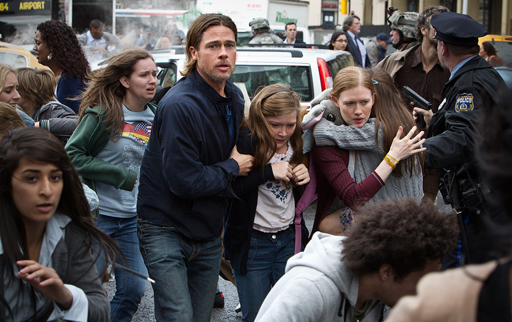 Брэд Питт спас жизнь актрисе массовки на съемках фильма «Война миров Z». Когда снималась одна из сцен, где сразу 300 человек-«зомби» должны были бежать, толкаясь и пытаясь опередить друг друга, Питт заметил, что одна из девушек оступилась и упала. Массовка же должна была остановиться только по сигналу, потому что снимать этот «зомби»-хаос было проблематично. Питт взял ответственность за срыв съемок сцены на себя, растолкал «зомби» и вытащил актрису, которой уже успели сделать две трещины в ребрах. При этом актеру самому локтями и коленками поставили множество синяков.