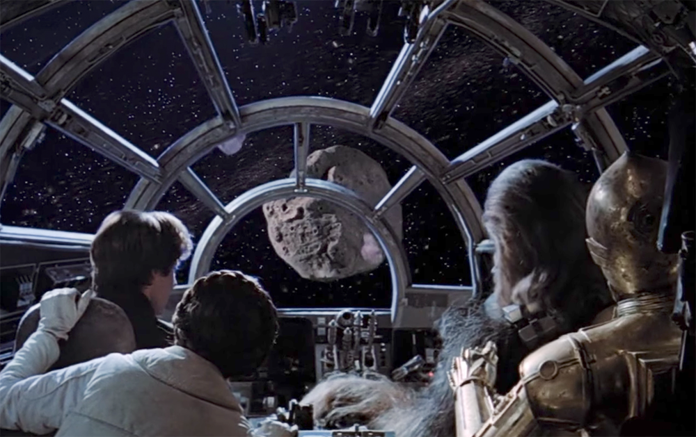 Если пилоту космического корабля хочется доказать свои ловкость и мастерство перед какой-нибудь принцессой, ему срочно надо пройти испытание опасным полетом сквозь массу летающих в космосе глыб. Так, видимо, считают многие кинематографисты, когда демонстрируют «фигуры высшего пилотажа». Вы тоже вспомнили старину Хана Соло? Какое невероятное напряжение испытываешь, когда наблюдаешь за «Соколом Тысячелетия», который беспорядочно бросается из стороны в сторону, пытаясь избежать столкновения с коварными астероидами!