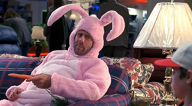 Комедия «Норт» вышла в 1994 году – как раз после двух «Крепких орешков», которые закрепили за Брюсом Уиллисом образ бравого полицейского. Но в «Норте», сценарий которого был предложен Уиллису чисто из азарта, повезет – не повезет, актер с удовольствием согласился на роль Пасхального кролика. В полном «боевом» снаряжении: розовый костюм, морковка и черный юмор.