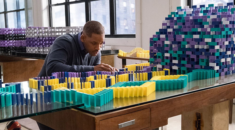 К слову о символах: на протяжении всего фильма мы видим домино. Для героя Уилла Смита, босса рекламной компании Говарда, это тот спасительный круг, с помощью которого он отвлекается от депрессивных мыслей о смерти дочери. Кропотливое выстраивание «замков» их фигурок связывает героя с его прошлым, а последующее разрушение «замка» действует как мгновенный сброс негатива. Домино – это прямое олицетворение всего, что происходит на экране. Сначала падает одна фигурка домино, и наблюдатель пребывает в догадках, вопросы сводят с ума, а недосказанность заставляет сомневаться. Зачем актриса Эйми, героиня Киры Найтли, приходила на кастинг, если после разговора с Уитом, персонажем Эдварда Нортона, она исчезла? Много случайностей и недосказанности. Кажется, что это такой ход сценаристов – сделать картину совершенно не предсказуемой. Но когда сюжет делает новый поворот и падает последняя «фигурка», зритель шокирован тем, как логично все сложилось. Все элементы соединились. Главные герои представляются теперь совсем по-другому, а эмоции взвинчиваются до предела.
