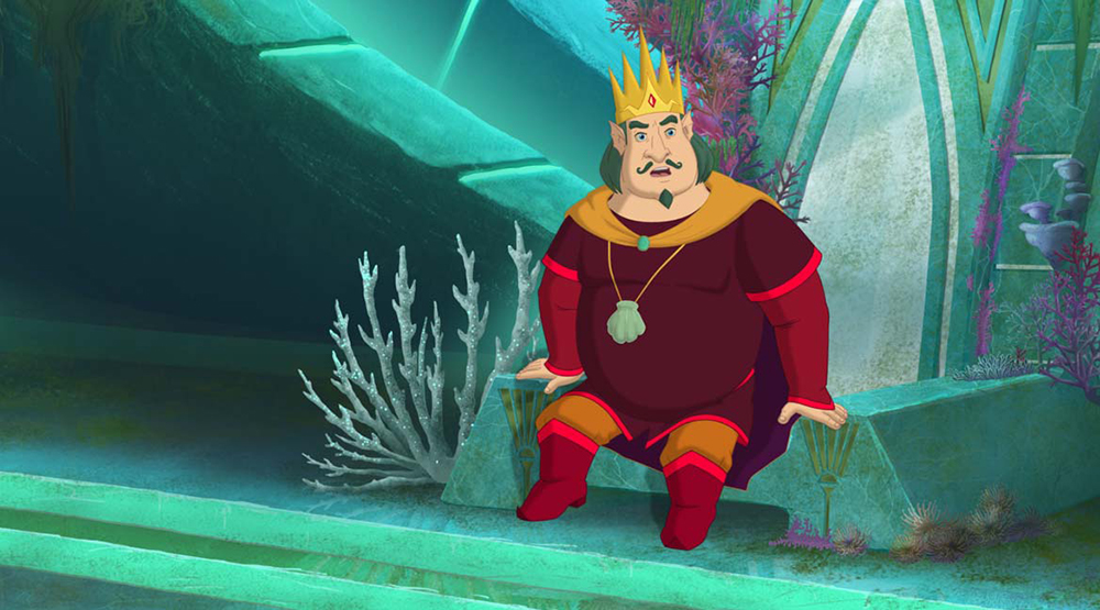 На первый план выходят жены богатырей, которые расстреливают из трезубца акул и морских хищных рыб, бьют тряпками влюбленного Морского царя и сетуют на запущенность и грязь подводного дворца.