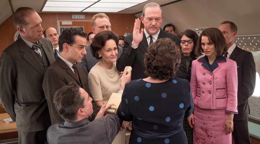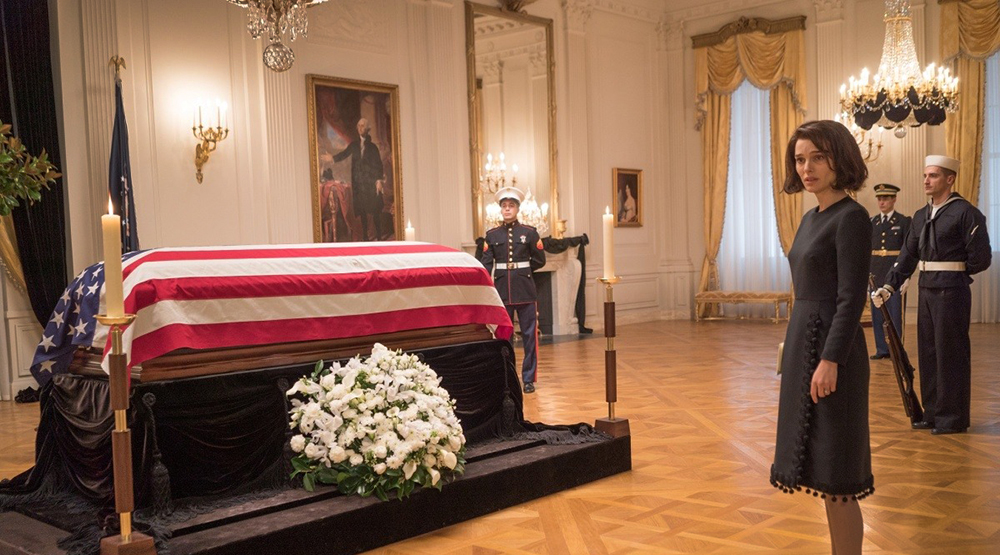 События фильма развиваются после того, как Джон Кеннеди был убит. Ларраин, представляя нам интервью Жаклин Кеннеди, которое она дает, на основе ее воспоминаний начинает чередовать трагическое и прозаическое, достигая катарсиса в сцене стрельбы в кортеж четы Кеннеди. Драматический талант Портман в череде этих черно-белых по настроению сцен проявляется в полной мере – роль Джеки Кеннеди одна из самых многогранных в ее карьере. Самым запоминающимся моментом ленты является, пожалуй, подготовка к похоронам Джона Кеннеди. Впечатляюще сыграна холодная, трагичная решимость, с которой экранная Жаклин отстаивает решение провести пышные похороны в духе прощания с Линкольном, против чего выступает Белый дом, якобы беспокоящийся о безопасности вдовы и приглашенных высокопоставленных политиков.