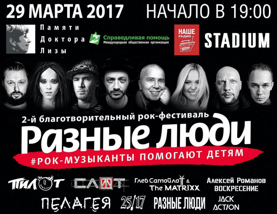 Билеты на благотворительный рок-фестиваль «Разные Люди. Рок-музыканты помогают детям» уже поступили в продажу.