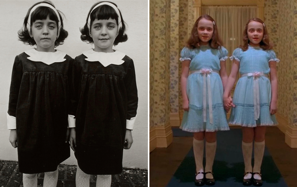 Сложно не упомянуть этот рефрен, пусть даже он относится к фотографии, а не к живописи. Эти две девочки наводят ужас уже на второе поколение ценителей искусства – статичная поза, жутковатый взгляд и.. в общем, вроде бы милые дети, но согласитесь – как-то под их взглядами не по себе. Именно такое видение прекрасного использовала мастер контрастов Диана Арбус. Прототипом образов девочек-близнецов из «Сияния» Стэнли Кубрика послужили сестры Кэтлин и Колин Уэйд, сфотографированные Арбус в 1967 году.