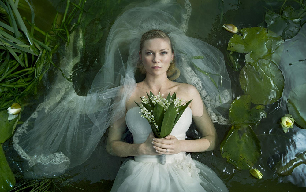 Еще один пример того, как художественное произведение становится источником вдохновения, а не шаблоном для создания образа. Меланхоличная картина Джона Эверетта Милле «Офелия» сообщила свое настроение режиссеру Ларсу фон Триеру. В «Меланхолии» мы можем наблюдать за как бы отдельным «арт-объектом», когда Кирстен Данст в свадебном платье плывет по ручью с букетом в руках. Настоящее удовольствие для эстетов и отличный перфоманс в духе Фон Триера.