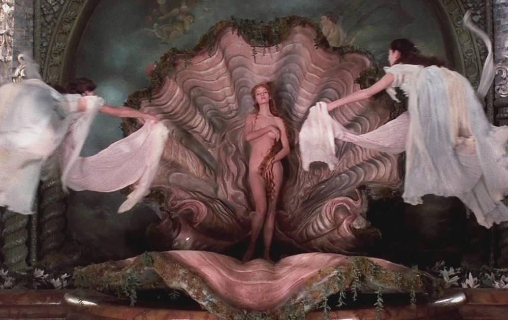 Одним из самых ярких «кинопрочтений» вековых произведений стала работа Терри Гиллиама «Приключения Барона Мюнхгаузена». В своей авантюрной истории о великом обманщике режиссер решил обратиться к картине «Рождение Венеры» Сандро Боттичелли. Сколько эпичным, столько же ироничным выглядела эта вариация рождения богини любви. Ума Турман в провокационном образе Евы появилась в «божественном» сюжете, точно изобразив богемность оригинального образа. Вся эта трепетность и возвышенность вкупе с окружением смотрелась иронично и легко. На такую, пусть даже точную, копию сложно смотреть серьезно, отчего скрупулезность воссоздания отошла на второй план.