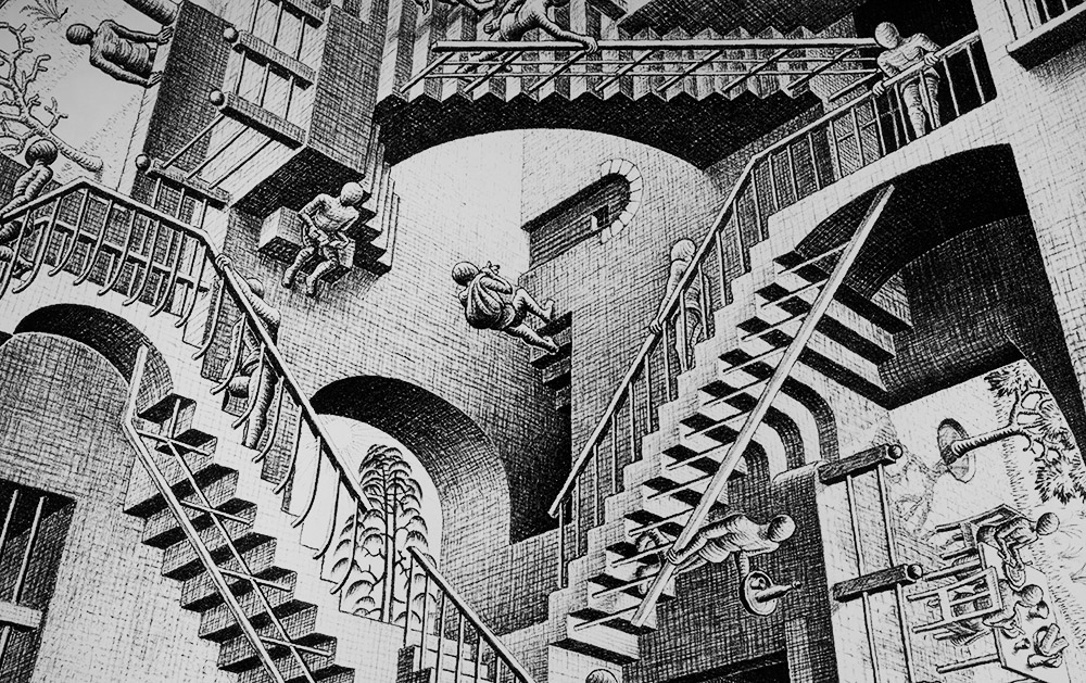 Фильм «Начало» Кристофера Нолана – это целый «путеводитель» по работам нидерланского художника-графика Маурица Эшера и тому, что он вкладывал в свои геометрические рисунки. Сплошная иллюзия, путаница и головоломка. Кажется, весь фильм был построен на этой сюрреалистической структуре, о чем даже четко говорят некоторые кадры.