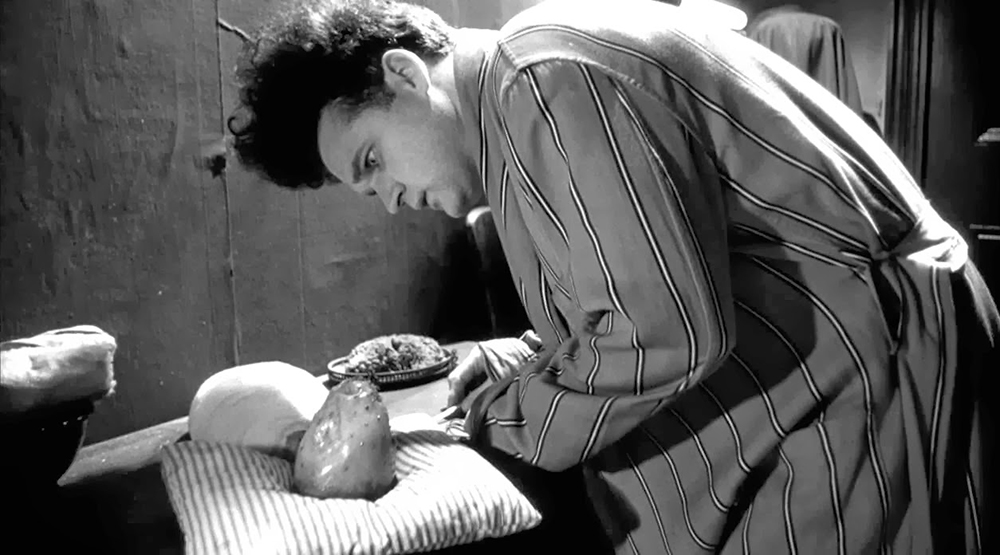 Фильмы Дэвида Линча вообще нельзя воспринимать буквально, будь то «Шоссе в никуда» (1997) или «Голова-ластик» (пожалуй, даже тем более «Голова-ластик») – все это снято через особый «фильтр Линча». Монотонная черно-белая (во многих смыслах) «индустриальная» жизнь главного героя (с его особенной метафизикой/ восприятием мира) в один прекрасный день дополняется гротескной карикатурой на ребенка, который постоянно плачет и требует особого ухода. При этом сам Дэвид Линч говорил, что черпал вдохновение для фильма в Библии - может быть, все еще сложнее?