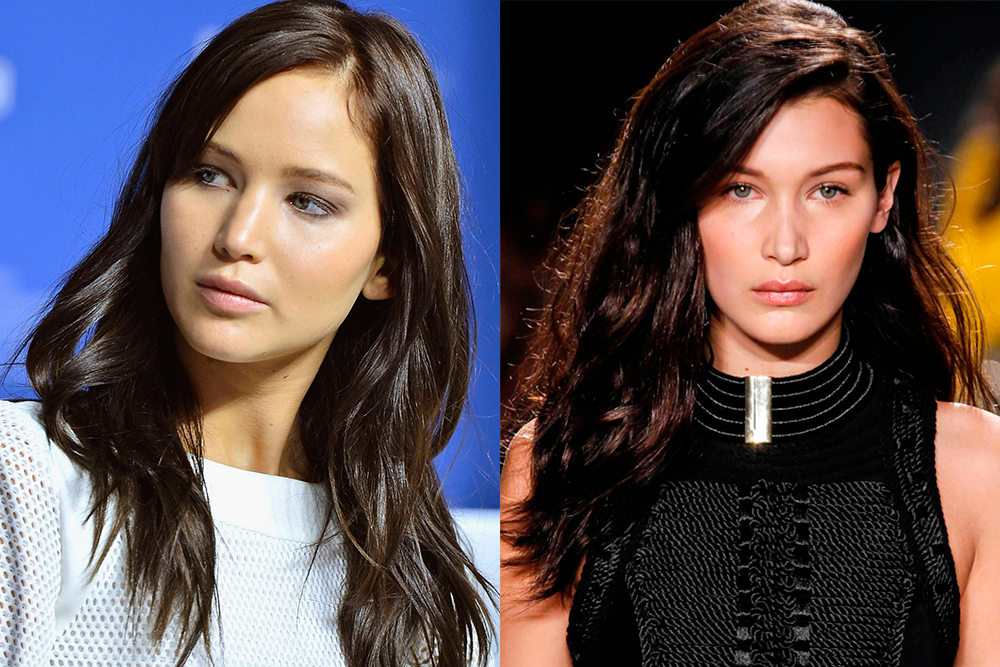 Когда звезда «Пассажиров» еще была брюнеткой она была как две капли воды похожа на фотомодель Беллу Хадид. Сейчас, когда она коротко постриглась и стала блондинкой, сходство не так заметно.