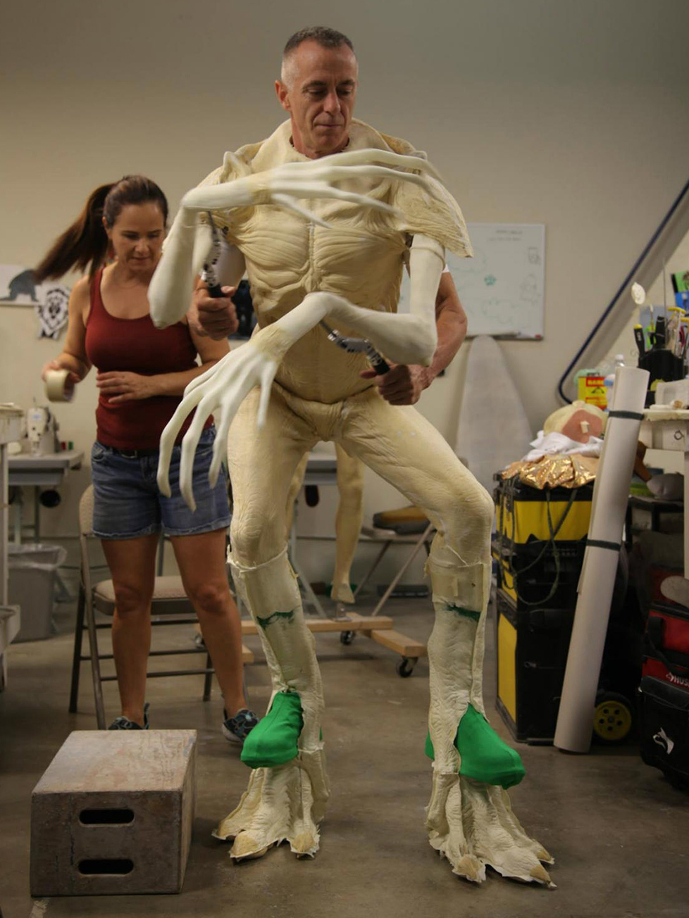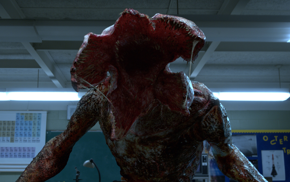 Когда, наконец, режиссеры утвердили эскизы демогоргона, было решено использовать как можно меньше CGI – чтобы не лишать актеров возможности «живого взаимодействия» с монстром. (У братьев Даффер вообще твердая уверенность в том, что монстры из 80-х поэтому и были такими страшными, что «физически находились» на съемочной площадке). Был заказан специальный костюм демогоргона, который надел актер, в итоге и сыгравший монстра. Без компьютерных эффектов, конечно, не обошлось, однако они использовались по-минимуму.