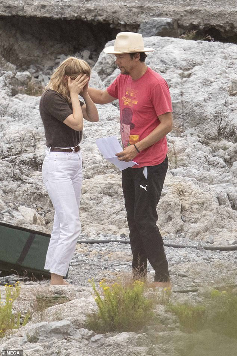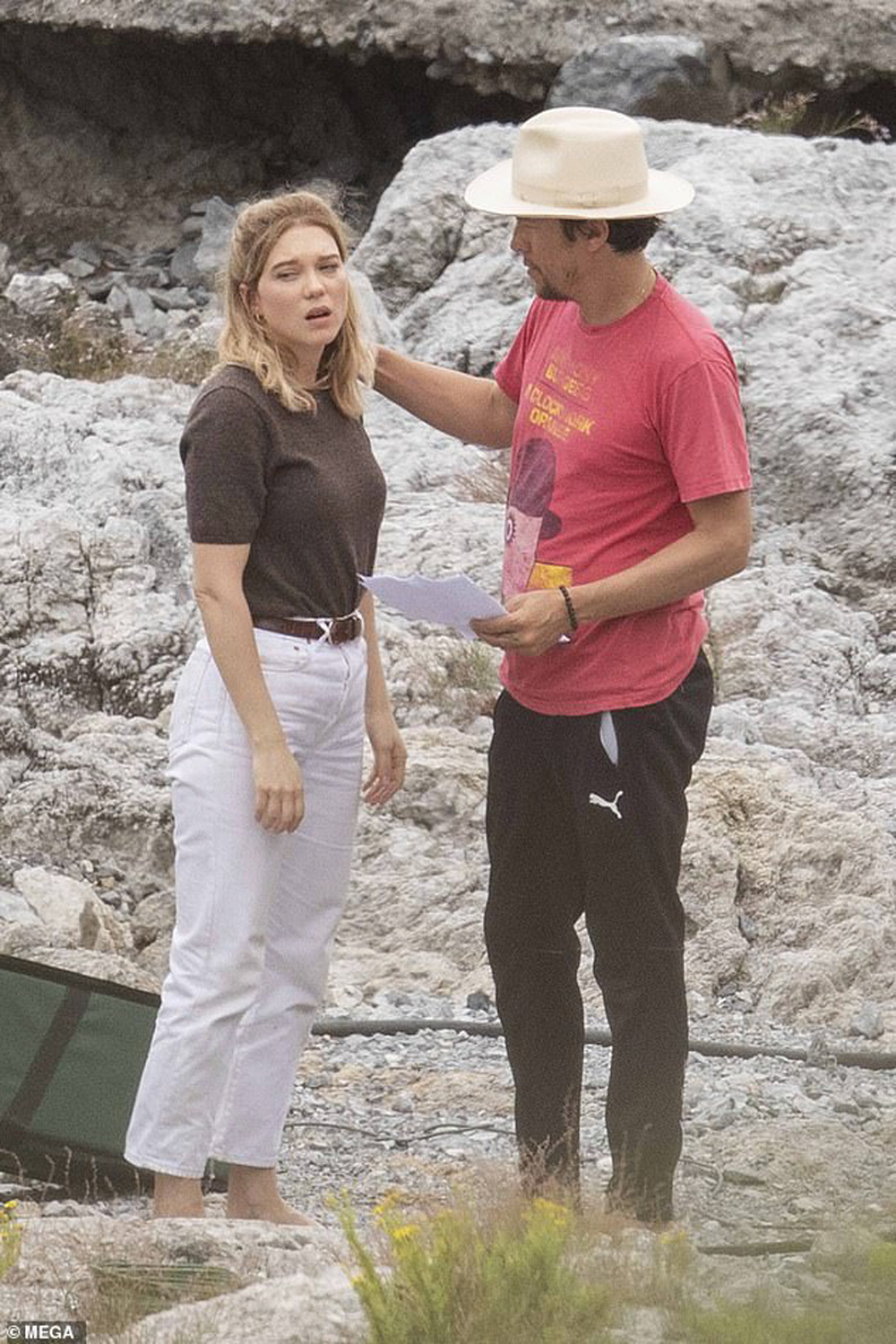 В объектив также попали Леа Сейду и Фукунага. Как видим, исполнительница роли Мадлен Суонн чем-то расстроена, а режиссер ее подбадривает. Однако, возможно, она просто репетирует.