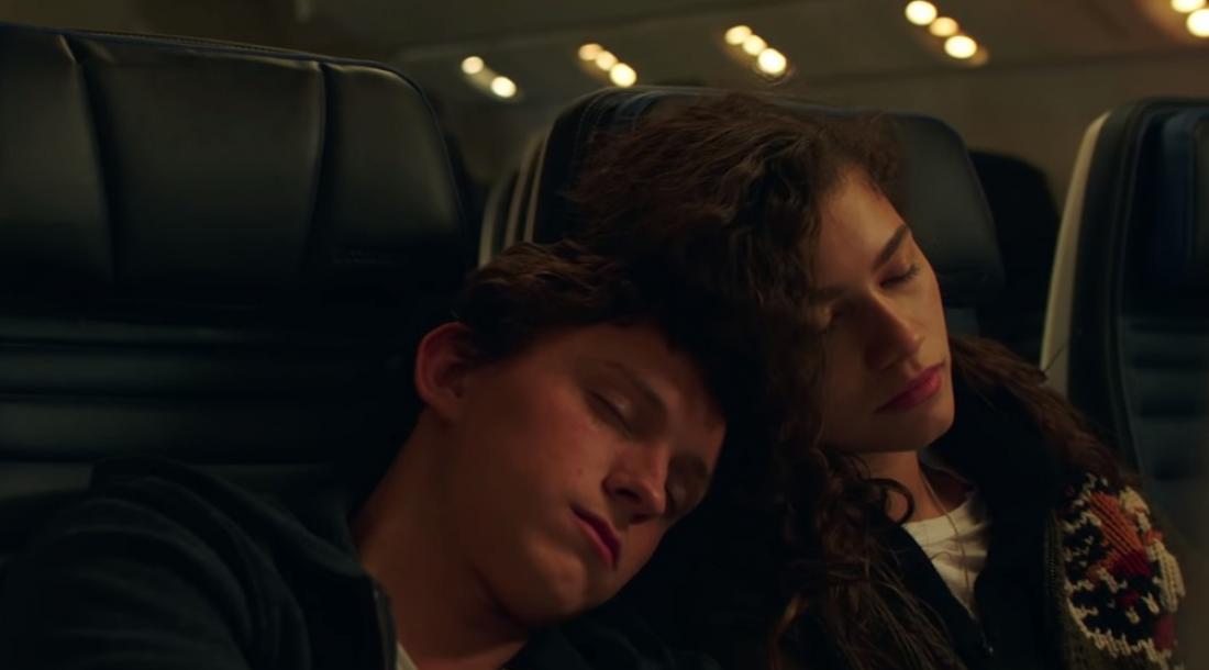 Открывается эпизод трогательным моментом в самолете. Нам показали, как по пути домой Питер Паркер (Том Холланд) дремлет на плече Эм-Джей (Зендая). А в конце ролика Паучок примерил очки Тони Старка (Роберт Дауни-младший) перед тетей Мэй (Мариса Томей).