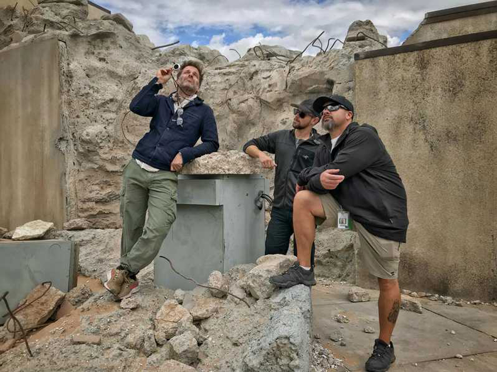 «Я и мой удивительный отдел операторов, ожидающие облака в последний день съемок. Это было весело!!!»