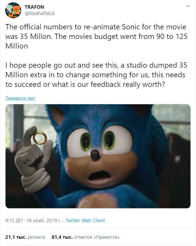 Стало известно, какой бюджет был потрачен на редизайн ёжика из «Соника в кино». Вопреки слухам, он (вдох) оказался гораздо меньше 35 миллионов долларов (выдох).
