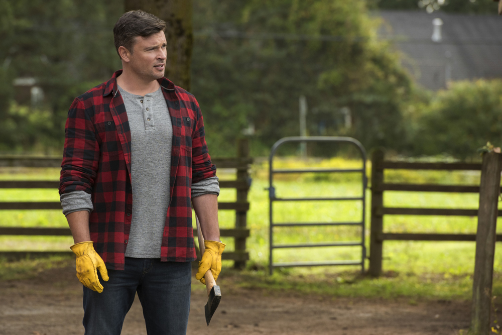 На снимках нам наконец-то показали Супермена из закрытого в 2011 году сериала «Тайны Смолвиля». К роли Кларка Кента вернулся Том Уэллинг, который предстал в обычной одежде: