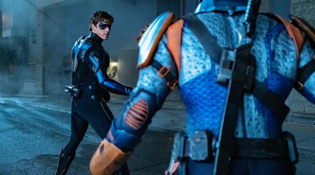 В конце сезона Дик Грейсон/ бывший Робин (Брентон Туэйтс) наконец-то предстанет в образе Найтвинга. Мы уже видели новый костюм в тизере, теперь можно рассмотреть его детальнее, в сцене с битвой с Дефстроуком (Эсай Моралес).