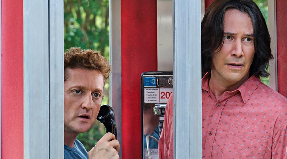 На снимках запечатлены сами Тед Логан (Киану Ривз) и Билл С. Престон (Алекс Уинтер) в машине времени, замаскированной под телефонную будку, а также дочери героев Билли (Бригитт Ланди-Пейн) и Теа (Самара Уивинг), а еще Смерть (Уильям Сэдлер):