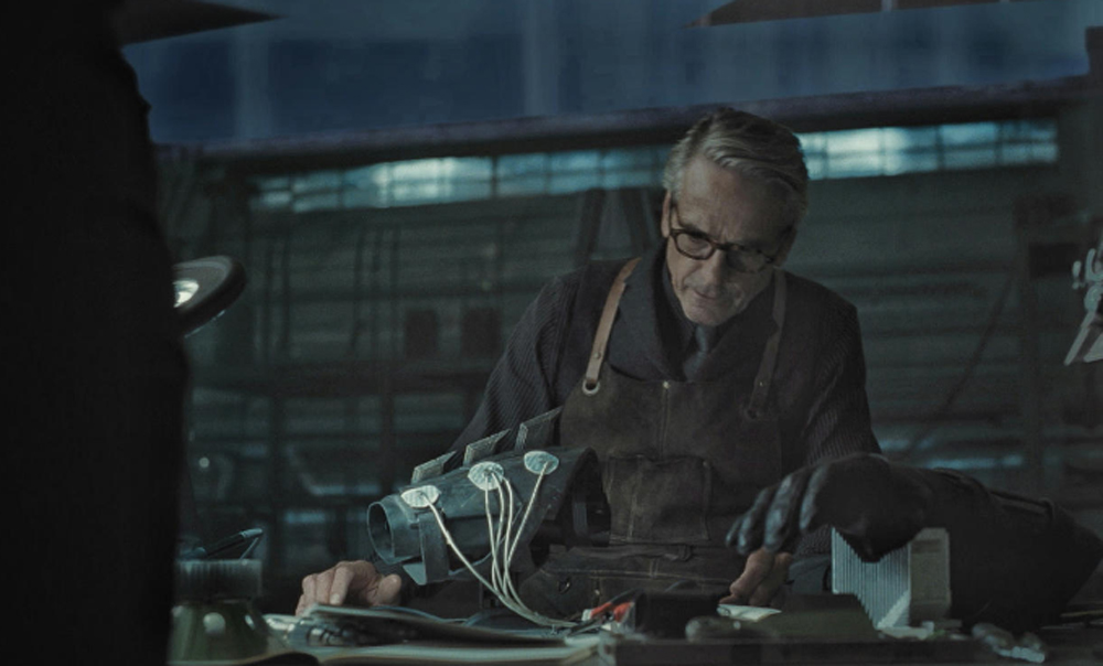 А на другой фотографии засветился дворецкий Бэтмена Альфред Пенниуорт (Джереми Айронс), который работает над перчаткой Темного рыцаря: