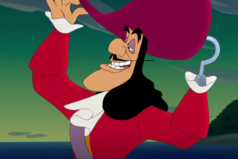 Персонаж описывается как «неуравновешенный, драматичный и грозный мечник, который хочет отомстить Питеру Пэну за то, что он отрезал ему руку и скормил ее крокодилу». Также в описании упоминается то, что Крюк берет в заложники братьев Венди и использует их как приманку. Упоминается и его помощник Сми, «который сделает все, чтобы угодить капитану». Да, все как в мультике, ничего нового.