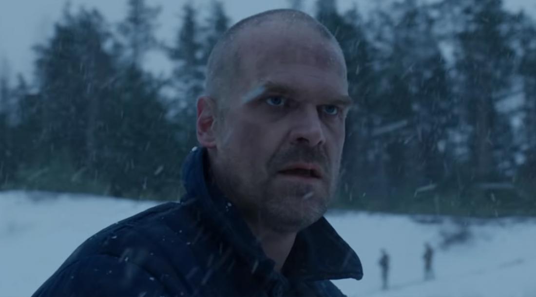Как помним, в финале 3 сезона Джим Хоппер вроде бы как погиб. Его смерть нам не показали, поэтому многие предположили, что он выжил. Ролик под названием «Из России с любовью» подтверждает, что герой Дэвида Харбора жив! Он вместе с другими заключенными трудится где-то на заснеженной Камчатке: