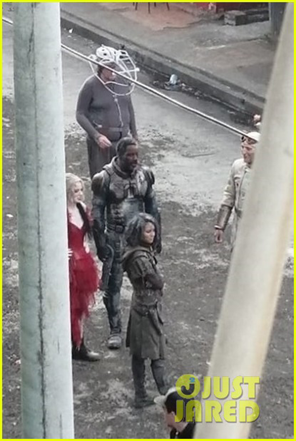 На снимках запечатлены персонажи, которых мы уже видели в недавнем видео с площадки. Перед нами вновь Харли Квинн (Марго Робби), Человек-в-Горошек (Давид Дастмалчян), Крысолов (Даниэла Мельхиор) и, предположительно, Линчеватель (Идрис Эльба). Однако теперь с ними новый загадочный герой: