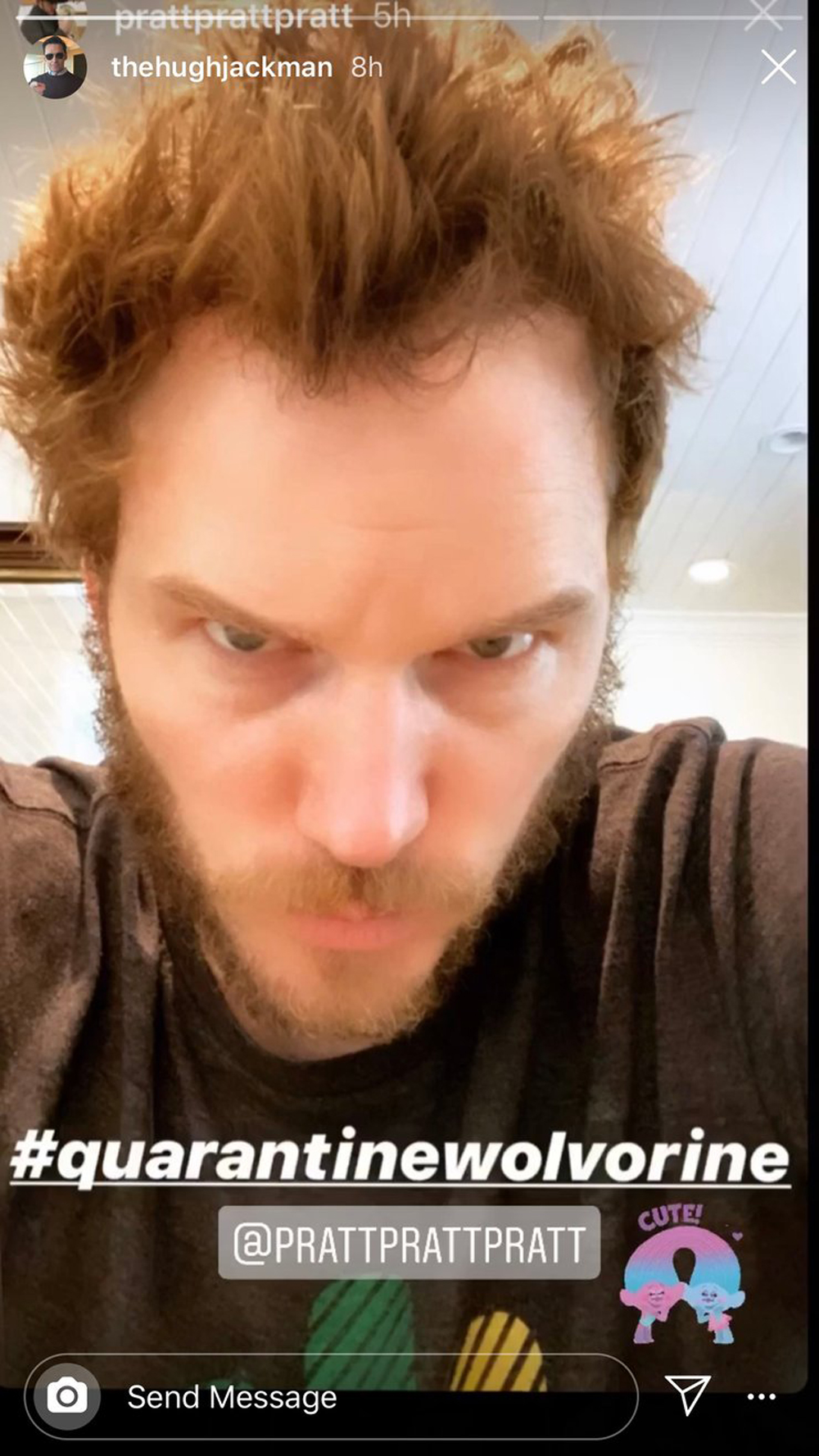 Хью Джекман, который и сыграл Росомаху в серии «Люди Икс», оценил образ коллеги. Актер репостнул себе фото Прэтта и добавил стикер с надписью «мило»: