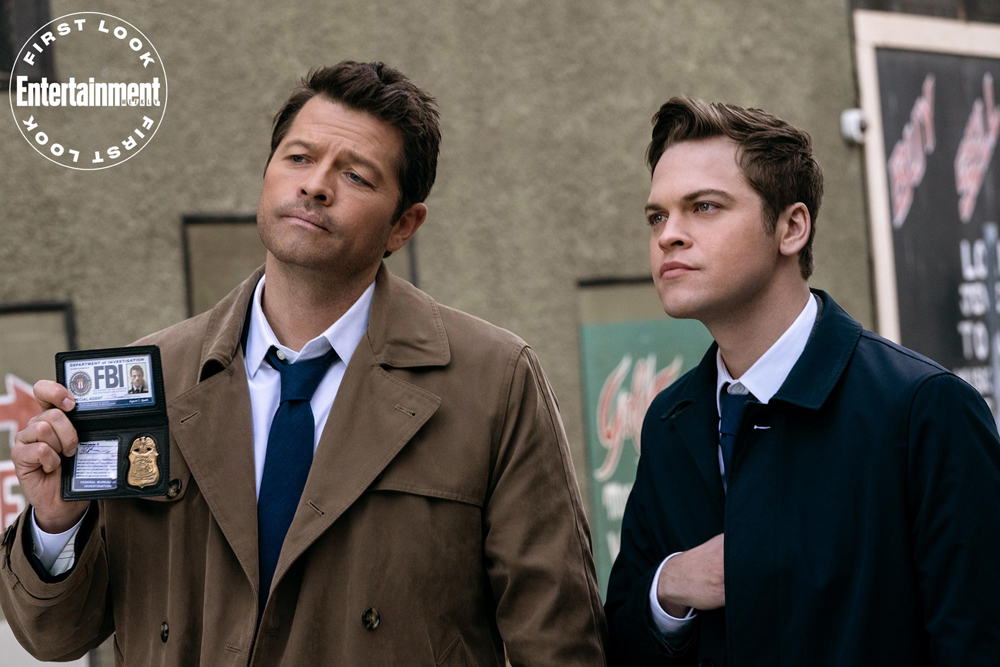 И также нам показали сцену, в которой Кастиэль (Миша Коллинз) и Джек Клайн (Александр Калверт) расследуют какое-то дело. Главное, чтобы Джек случайно не перевернул свой значок, как это однажды сделал Кас.
