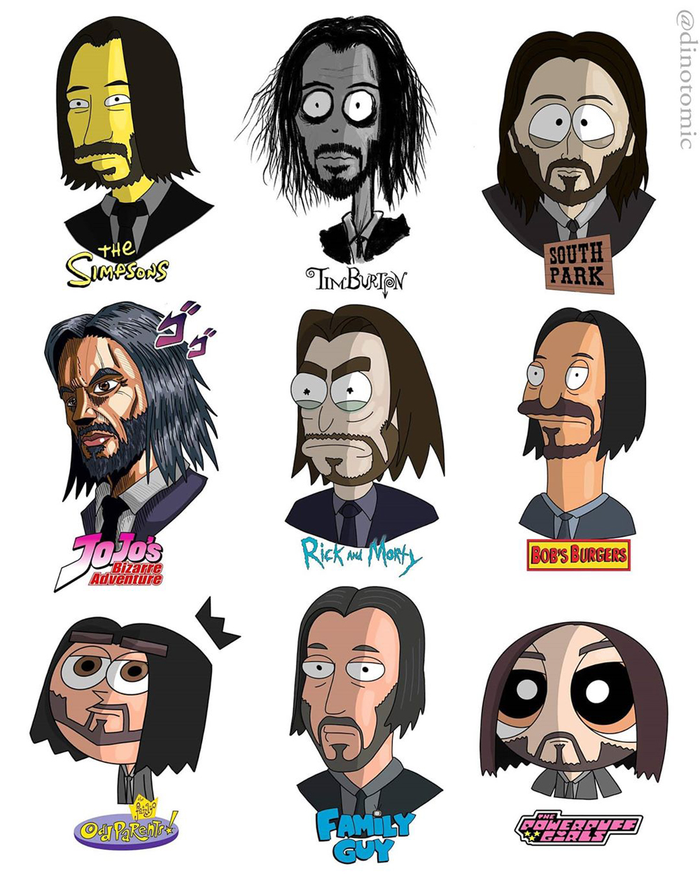 Художник Дино Томич выложил в Instagram коллаж из артов с Киану Ривзом в мире разных мультиков.