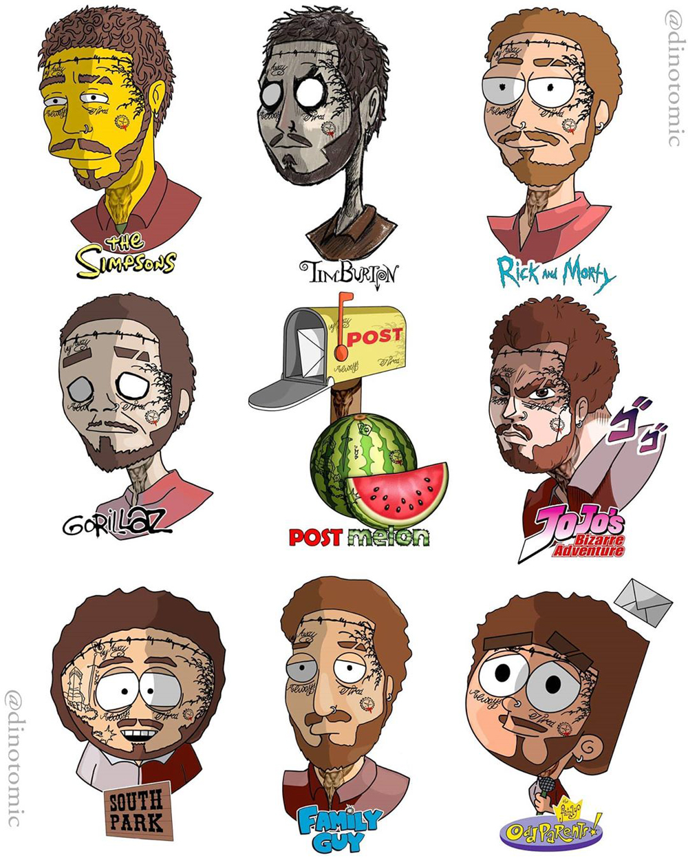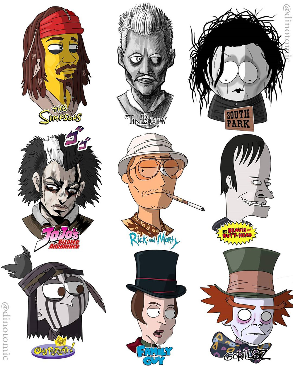 У художника есть еще несколько работ в похожем стиле. Вот, например, арты с Джонни Деппом, Билли Айлиш и Post Malone: