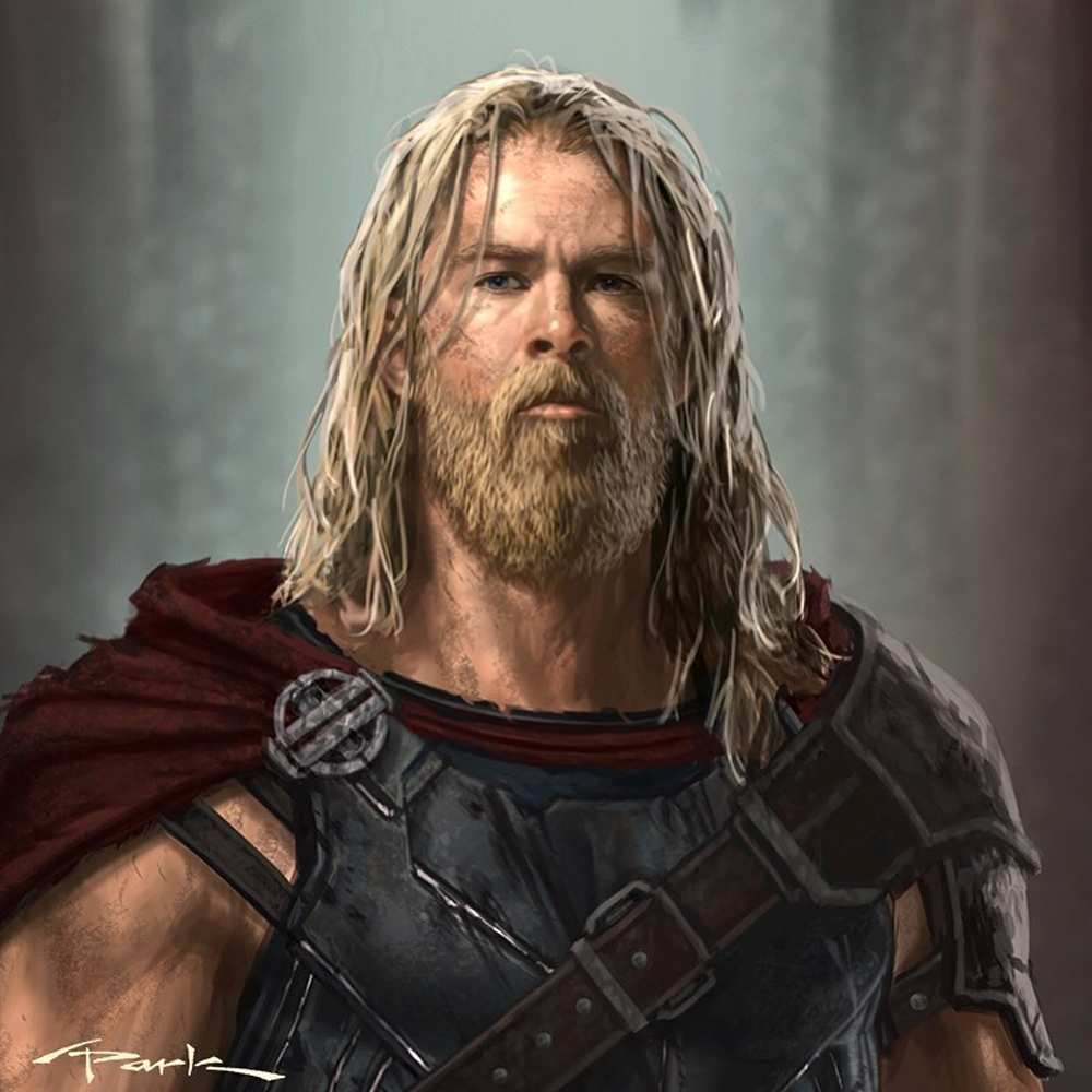 Как видим, на концепт-артах внешний вид у героя совсем другой. Более того, Тор выглядит потрепанным и даже утомленным. А стрижка здесь у него весьма экстремальная, Пар сделал героя почти лысым. Сами наряды тоже несколько отличаются от тех костюмов, что мы увидели в ленте.