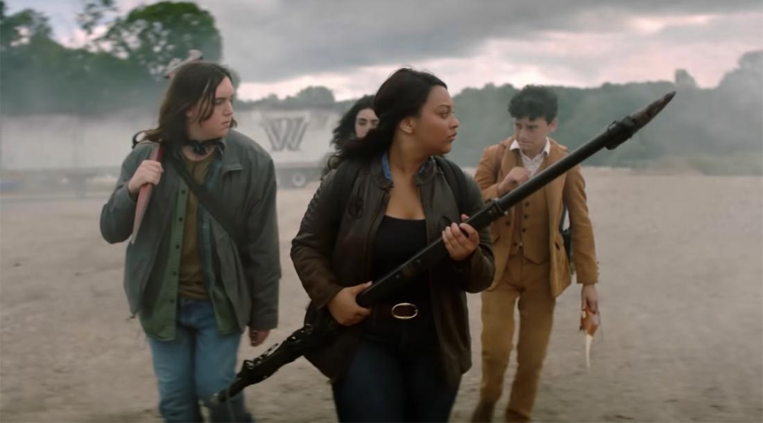 Как видим, за подростками следуют Феликс (Нико Торторелла) и Хак (Аннет Махендру), которые несут ответственность за ребят. Молодые люди встречают на своем пути опасных зомби, с которыми им необходимо как-то справиться. Однако особую угрозу, видимо, представляют военные. Это те самые люди на вертолетах, которых можно было увидеть в лентах «Ходячие мертвецы» и «Бойтесь ходячих мертвецов». А возглавляет отряд суровая Элизабет (Джулия Ормонд).