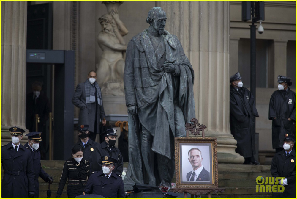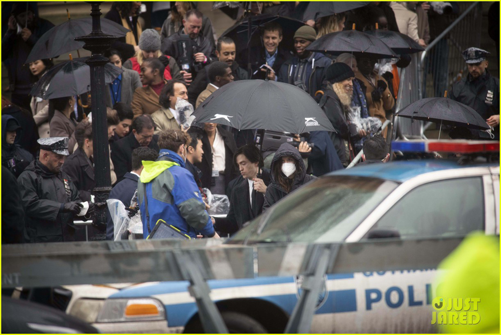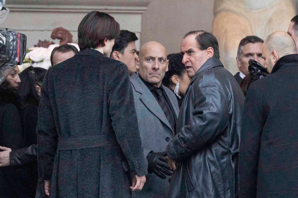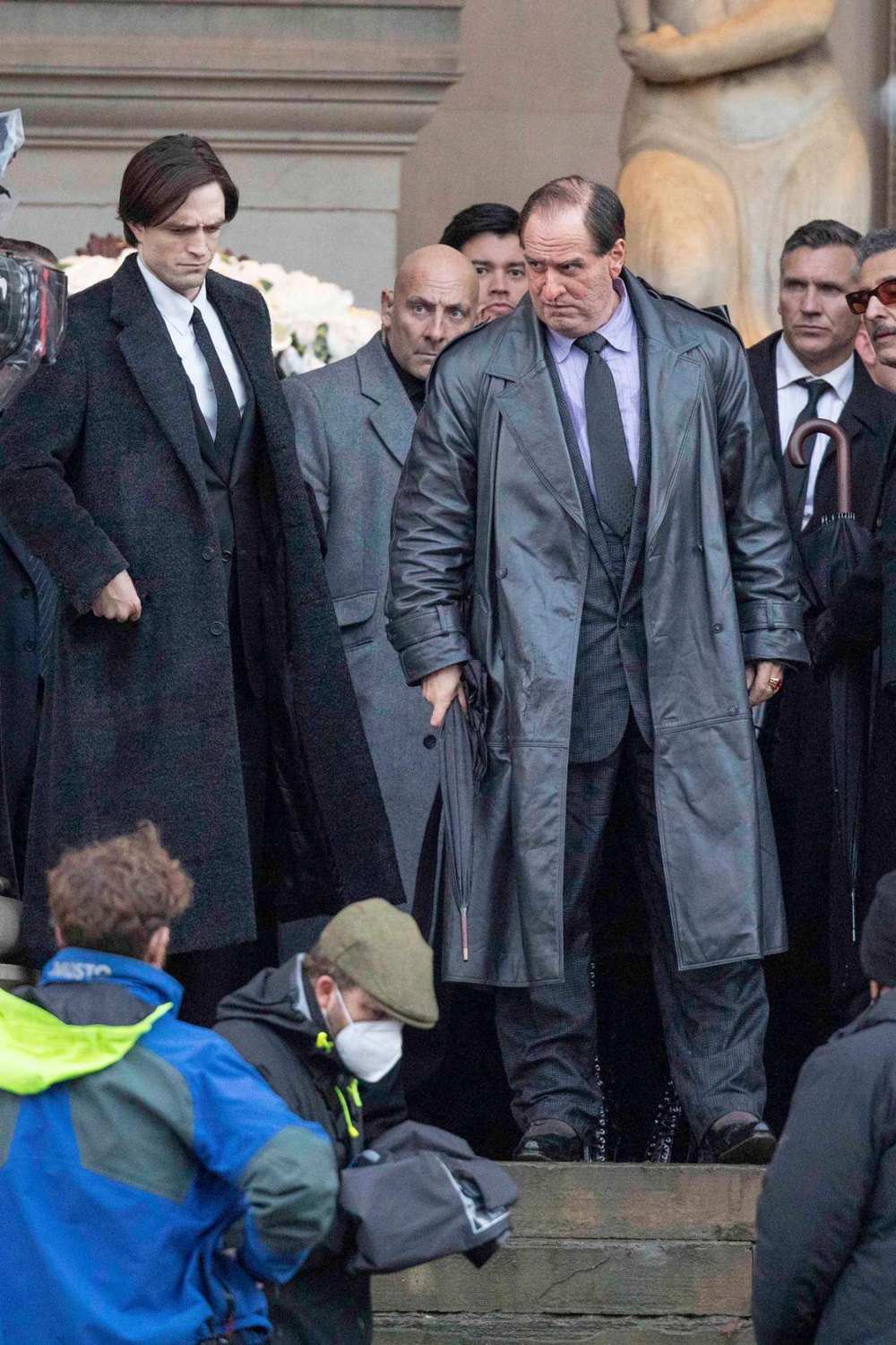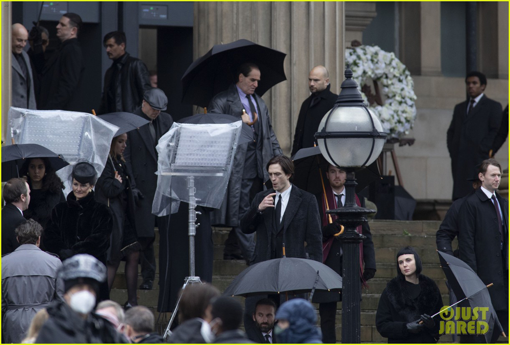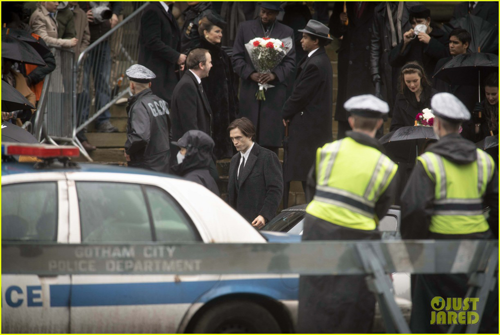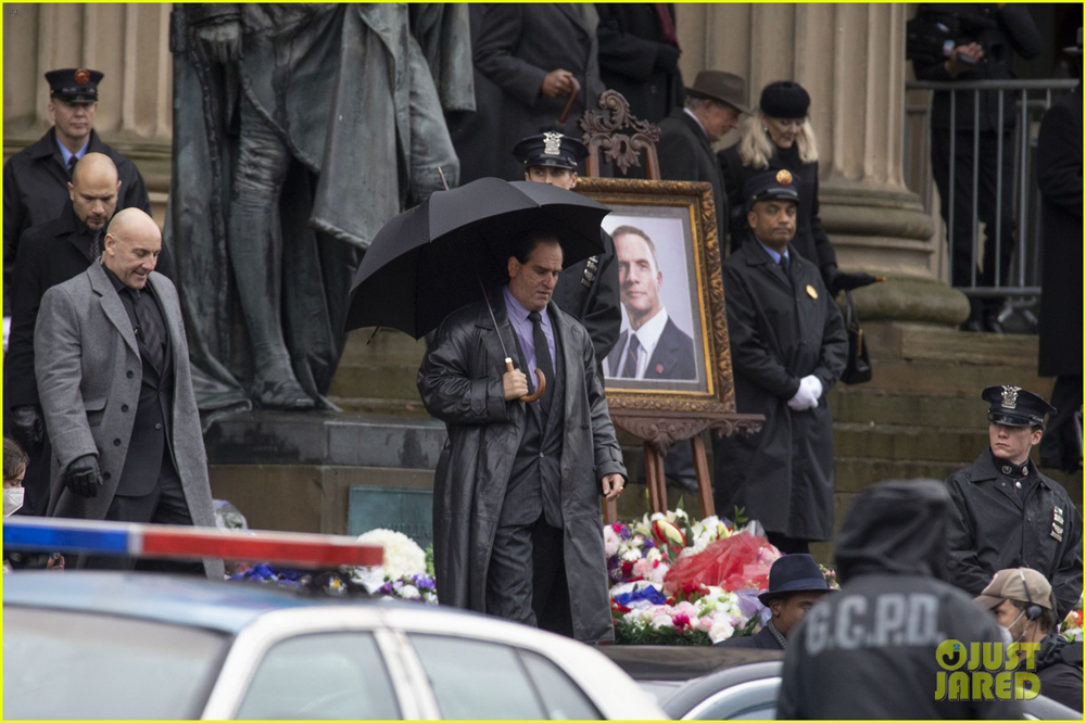 На снимках запечатлена та же сцена похорон персонажа Руперта Пенри-Джонса (предположительно, мэр Готэма или окружной прокурор), которую показали на недавних фотографиях. Вероятно, мужчина стал одной из жертв Загадочника/ Эдварда Нигмы (Пол Дано). И здесь засветились довольно значимые для картины персоны: