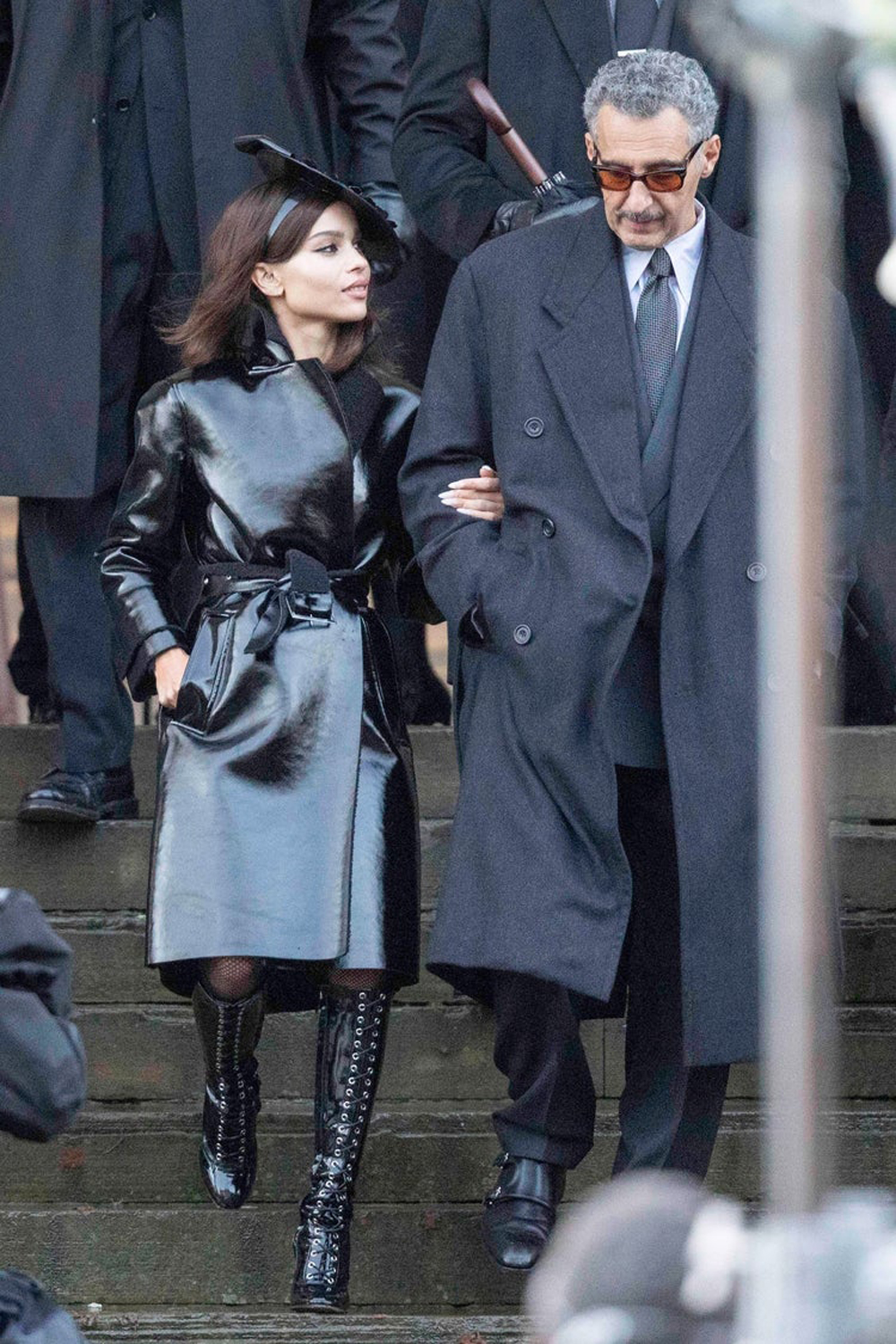 Так, мы впервые можем увидеть влиятельного мафиози Кармайна Фальконе в исполнении Джона Туртурро. Злодей, как видим, пришел на похороны вместе с Селиной Кайл/ Женщиной-кошкой (Зои Кравиц). Судя по всему, герои будут сотрудничать. Или же Селина в каких-то своих целях решила втереться в доверие к боссу мафии. Кстати, на лице Фальконе можно заметить шрамы. В комиксах DC он их получил как раз благодаря Женщине-кошке. Может быть, Ривз сохранил эту сюжетную линию. К слову, в комиксах предполагалось, что Селина могла быть незаконнорожденной дочерью Кармайна. Тоже неплохая основа для истории.