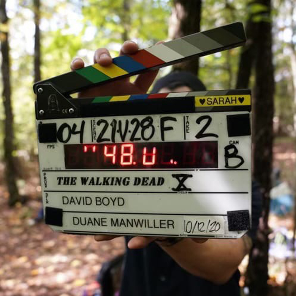 Еще один кадр со съемок бонусных эпизодов опубликовали на официальной странице сериала в Twitter. На фото видны хлопушка и лес, а в самом посте написано: «Свет, камера, ХОДЯЧИЕ!».
