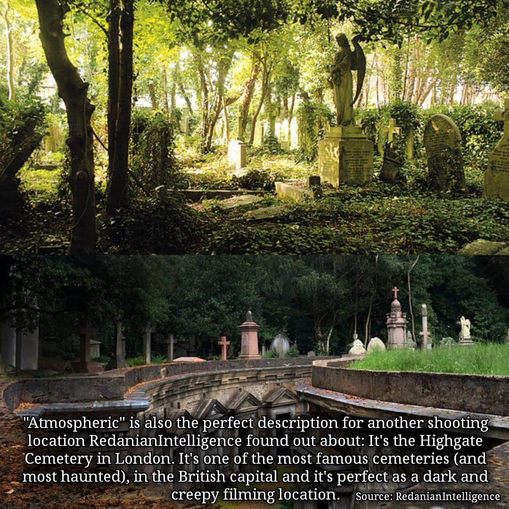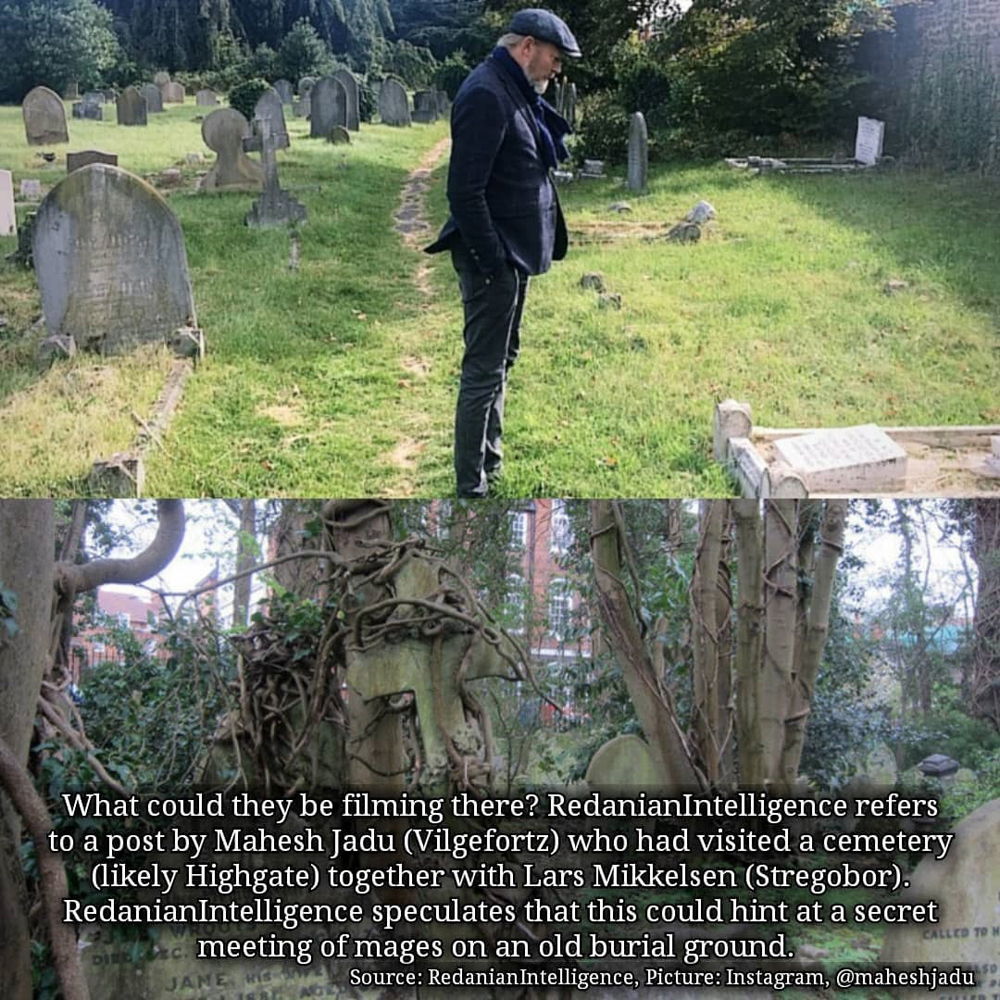 Ранее появилось еще несколько кадров, которые подтвердили две атмосферные и довольно жуткие локации. На них запечатлены лес неподалеку от деревни Дипкат графства Суррей в южной Англии и Хайгейтское кладбище в деревне Хайгейт на севере Большого Лондона, которое по легендам очень любят посещать призраки. К слову, странное дерево на фото с лесом, вероятно, намекает на логово монстра. А на снимке с кладбищем, кстати, запечатлен актер Ларс Миккельсен, который играет Стрегобора.