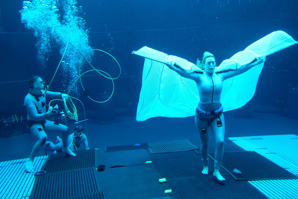 Как известно, в предстоящих лентах Джеймс Кэмерон и его команда отправят зрителей в путешествие по разным местам Пандоры, и особенно много будет локаций с водой. На новом снимке нам вновь показали работу команды в бассейне, на этот раз под водой играет Кейт Уинслет: