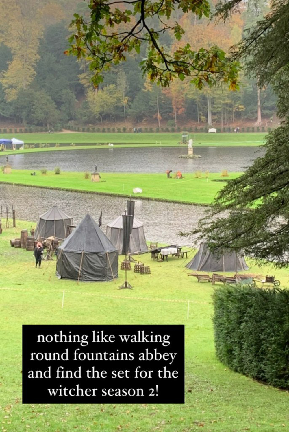 Команда проекта недавно приступила к подготовке важной сцены в Фаунтинском аббатстве на севере Англии (в графстве Северный Йоркшир). Как ожидается, очень скоро Генри Кавилл (Геральт из Ривии) и другие звезды шоу приступят к съемкам одного ключевого момента из книг Анджея Сапковского. И на площадке уже был замечен лагерь нильфгаардской армии: