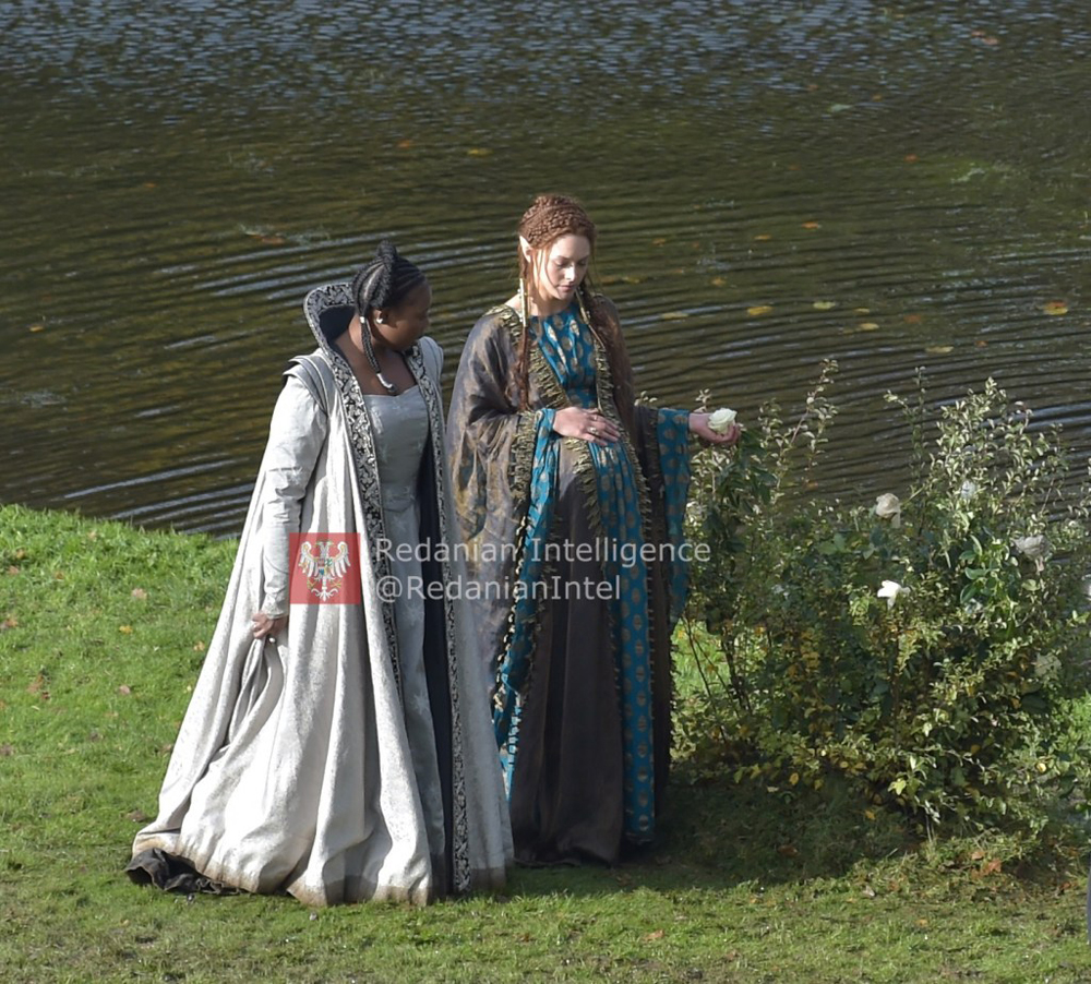 Стоит отметить, что на снимке Францеска трогает белую розу. Это говорит нам о том, что запечатленные на фотографиях красоты Фаунтинского аббатства на севере Англии послужат локацией с руинами эльфийского дворца Шаэрраведд. Именно в этом месте растут цветы, названные в честь эльфийки Аэлирэнн. Кстати, оба кадра, похоже, подтверждают, что эльфы из лесного партизанского отряда Скоя’таэлей и Империя Нильфгаард и правда будут сотрудничать, на что намекали другие снимки.