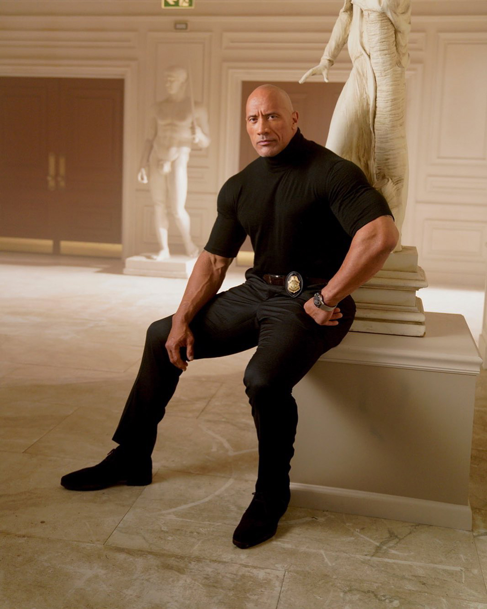 Дуэйн Джонсон выложил в Instagram новый стильный кадр со съемок фильма Netflix «Красное уведомление» режиссера и сценариста Роусона Маршалла Тербера.