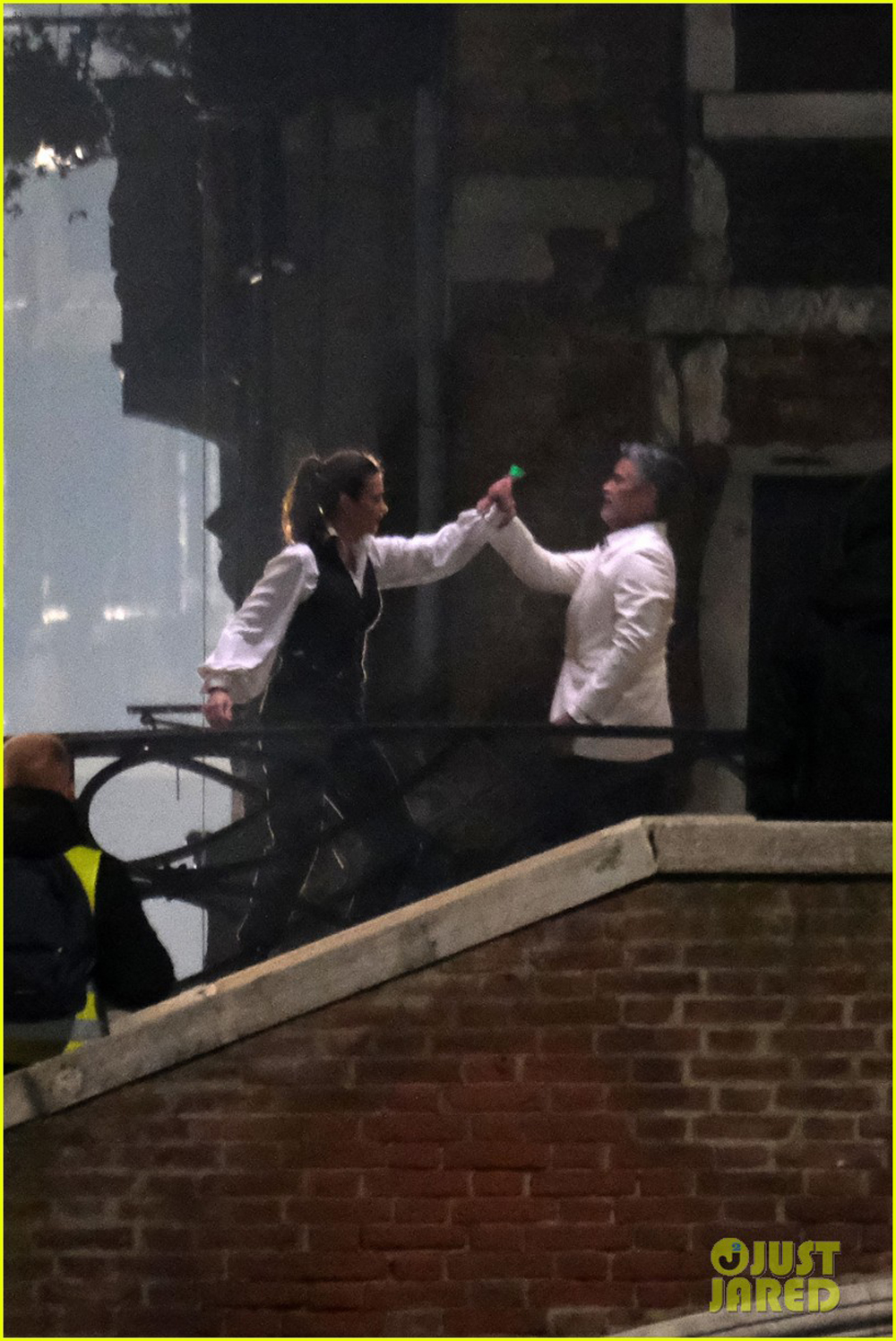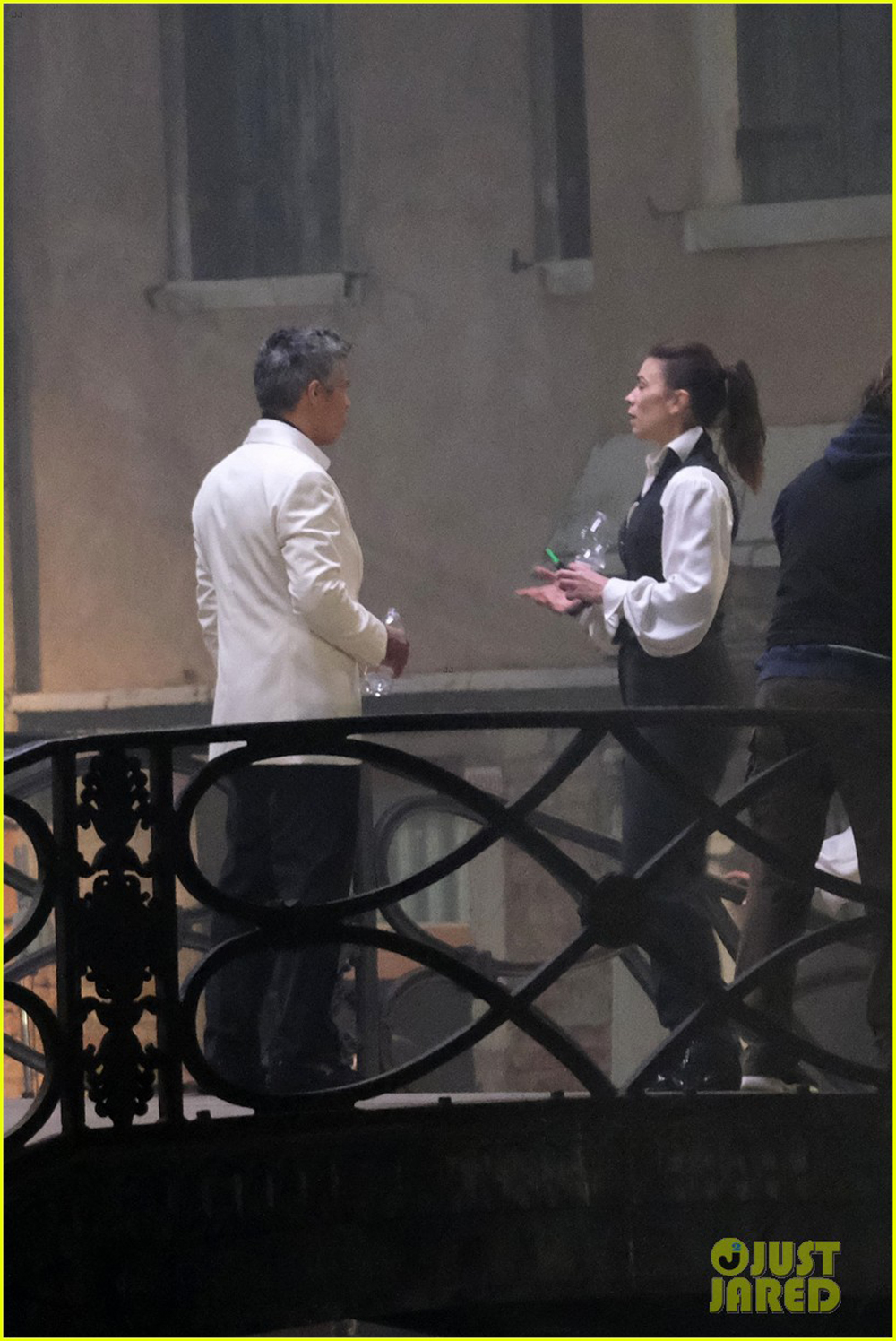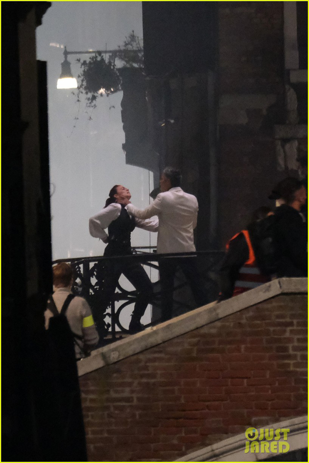 На снимках запечатлены два дебютанта шпионской серии боевиков Хейли Этвелл и Эсай Моралес. Герои расположились в атмосферном месте где-то в Венеции, Италия, но не для душевной беседы. Перед нами весьма жестка сцена драки между персонажами, в ходе которой Моралес даже схватил Этвелл за горло. Видимо, эпизод будет напряженным: