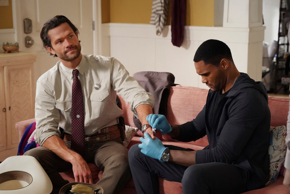 На фотографиях можно увидеть воссоединение техасского рейнджера Корделла Уокера в исполнении Джареда Падалеки с родственниками, а также его совместные сцены с коллегами. Есть еще флэшбек с умершей женой героя (Женевьев Падалеки):