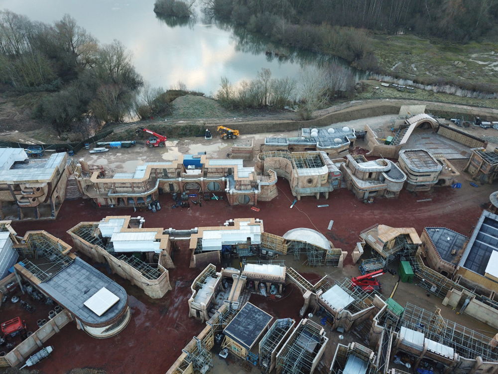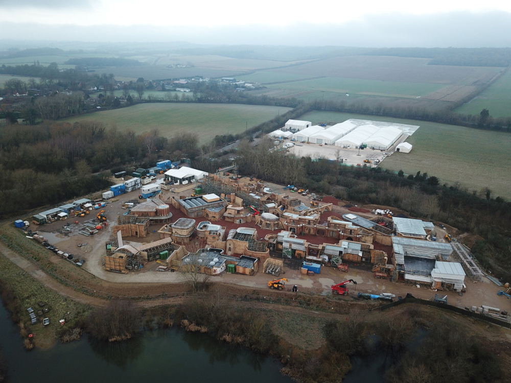 Как сообщает The Sun, студии Disney было официально разрешено использовать для съемок один бывший карьер рядом с озером, расположенный у тихой деревни Литтл Марлоу, Бакс. Есть даже кадры с площадки, на которых видно, что для съемок соорудили полноценный инопланетный мини-город. Сложно понять, что это за локация, однако стиль «Звездных войн» определенно сохранен. Есть десятки разных зданий и шатры для производственных помещений: