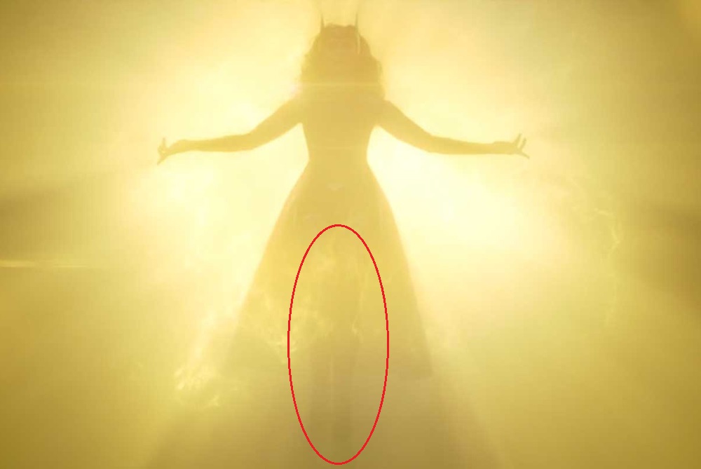 Конечно, это может оказаться простым обманом зрения. Может быть, так просто выделяются ноги Алой Ведьмы. Однако любители искать повсюду намеки на тайного злодея Мефисто наверняка подумали, что это прячется марвеловский дьявол. Кстати, многочисленные теории о Мефисто уже стали мемом: