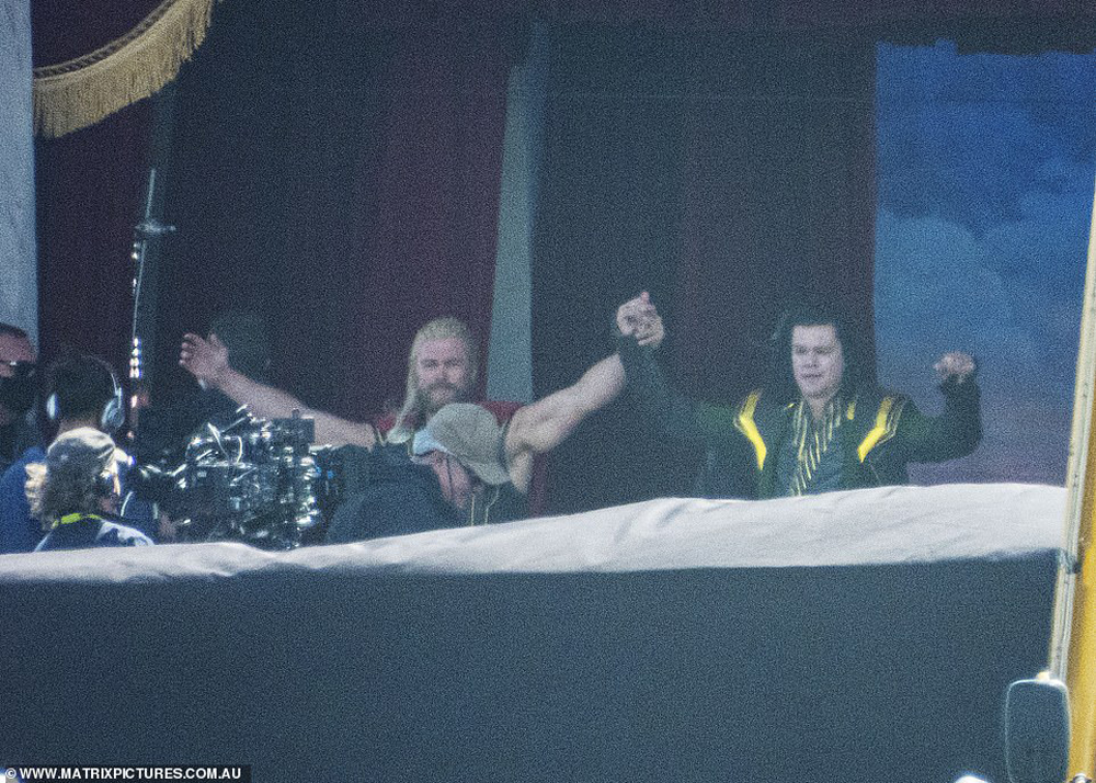 На снимках и в ролике вновь показали «спектакль», в котором актеры театра Асгарда разыгрывают сцену из «Тора: Рагнарек». «Тора» (Крис Хемсворт) изображает Люк Хемсворт, «Локи» (Том Хиддлстон) - Мэтт Дэймон, «Одина» (Энтони Хопкинс) - Сэм Нил, а «Хелу» (Кейт Бланшетт) - Мелисса МакКарти: