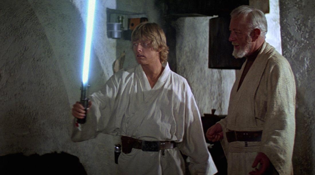 У себя в Twitter Хэмилл ретвитнул знаменитый кадр со съемок фильма «Звездные войны. Эпизод IV: Новая надежда», на котором еще совсем юный джедай Люк Скайуокер направляет световой меч прямо себе в лицо, пока за ним наблюдает Оби-Ван Кеноби (Алек Гиннесс).