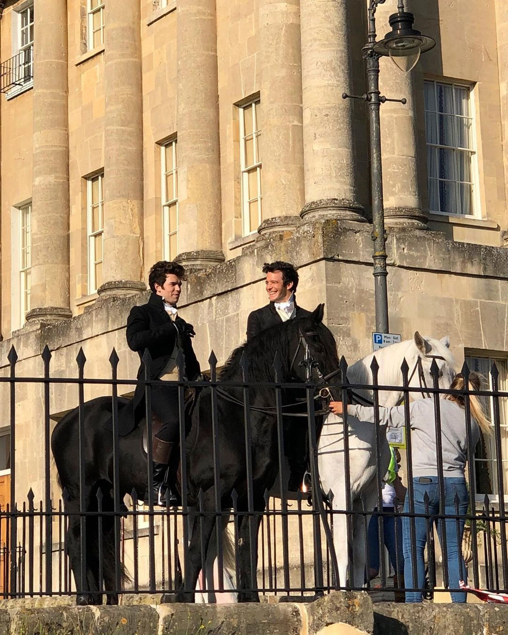 Люк Ньютон опубликовал в Instagram новые кадры и видео со съемок 2 сезона сериала Netflix «Бриджертоны», основанного на книгах Джулии Куин.