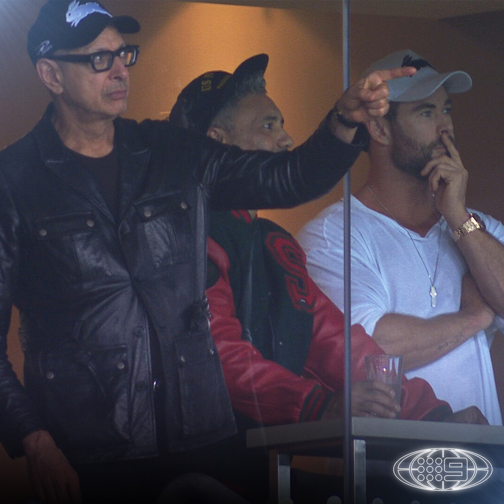 Намеки на камео правителя Сакаара были и раньше. В марте в Сеть попал снимок, на котором Джефф Голдблюм составляет компанию режиссеру и сценаристу Тайке Вайтити, а также главной звезде франшизы Крису Хемсворту, который играет Тора.