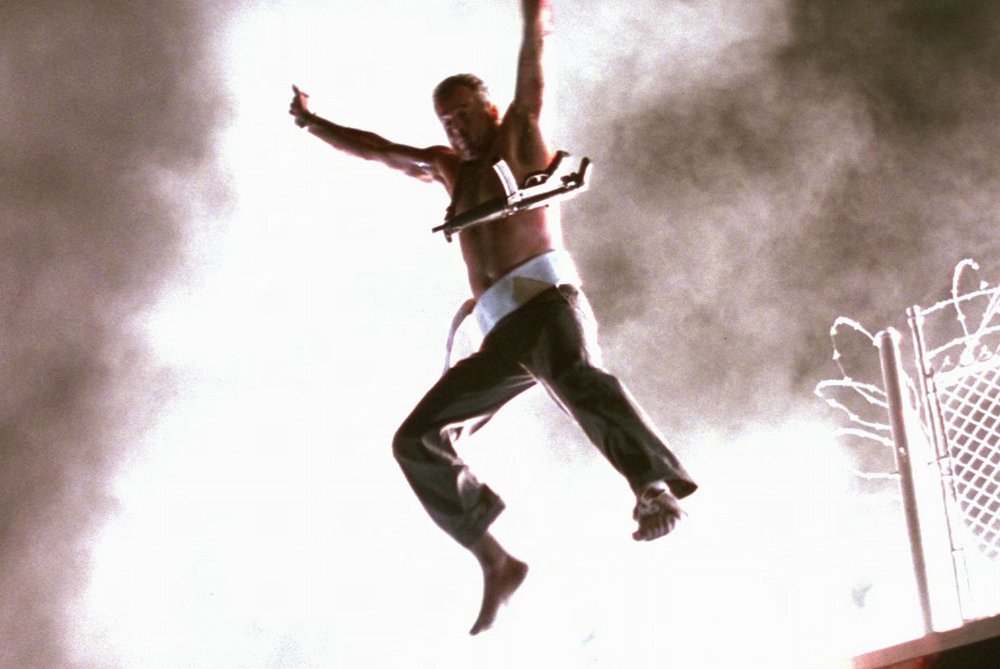 Как оказалось, команда действительно планировала сделать сцену с Конгом похожей на тот эпизод, в котором Джон Макклейн в исполнении Брюса Уиллиса спасается от взрыва.