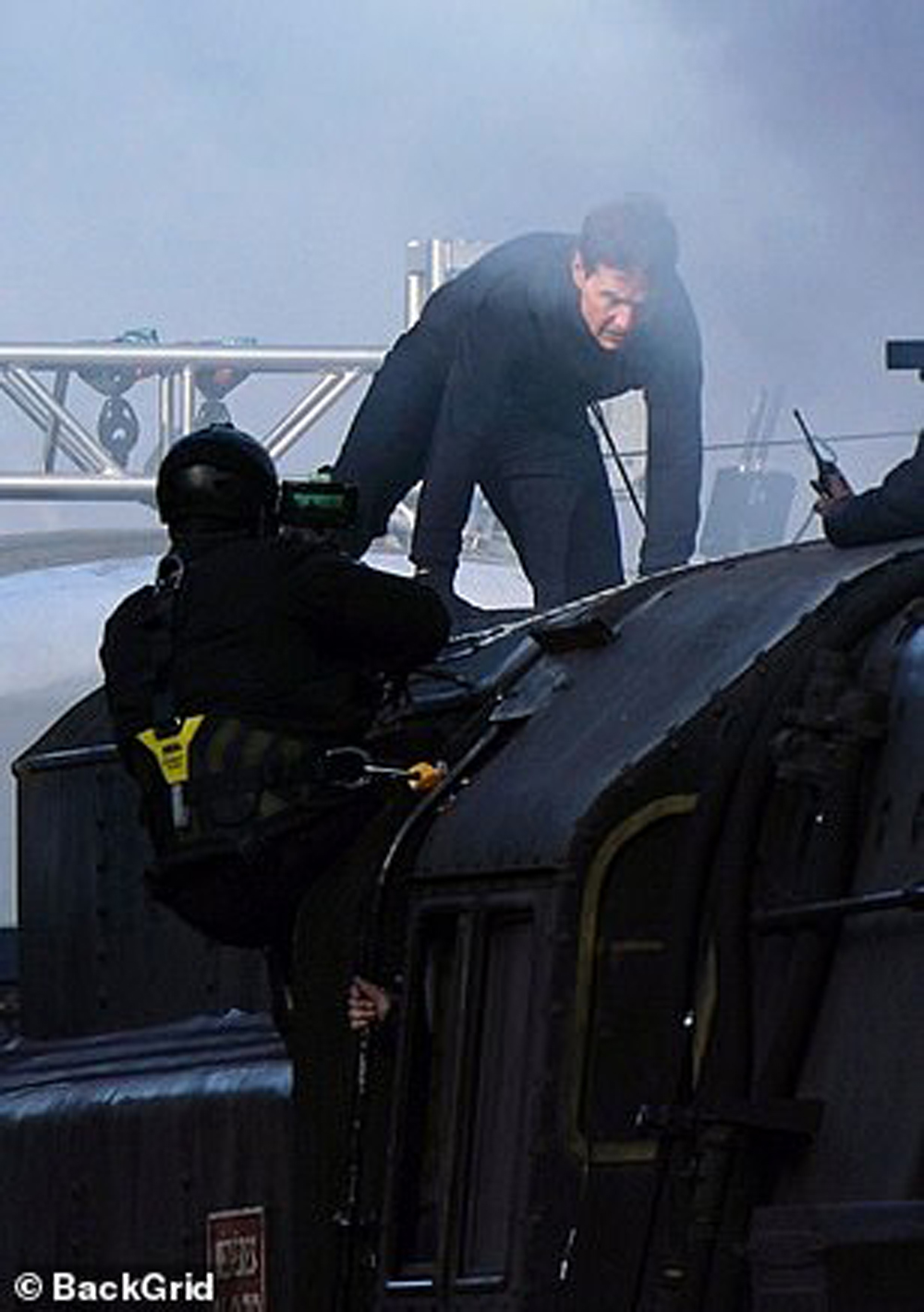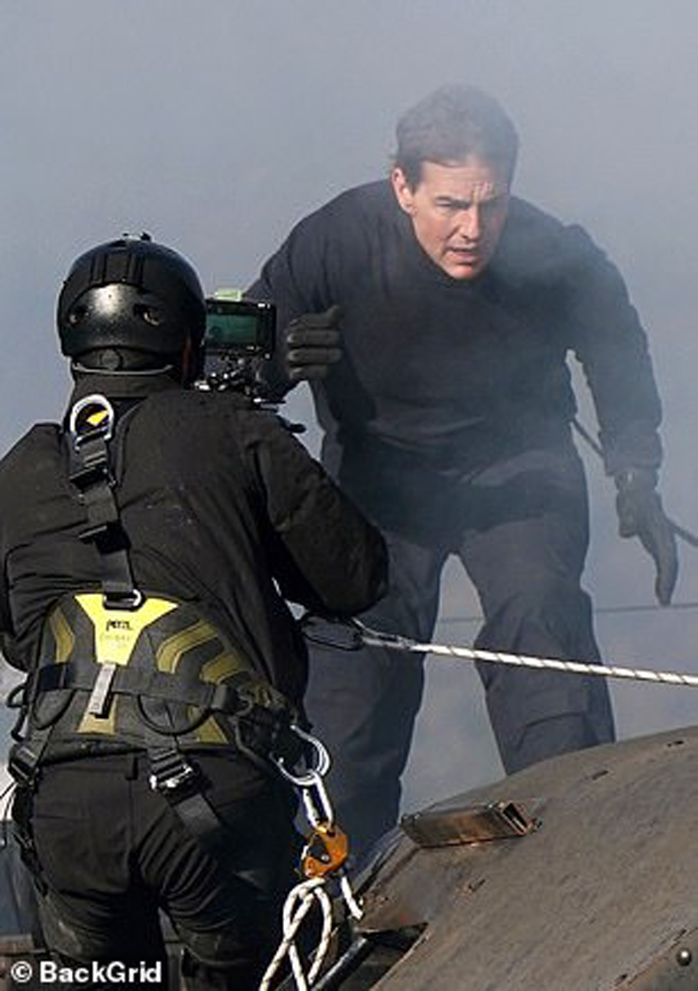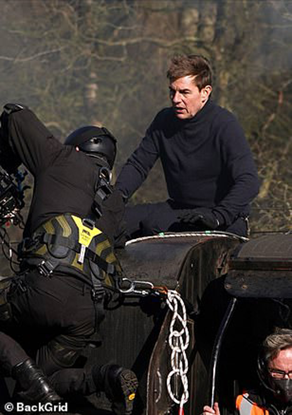 Видно, что у оператора есть ремни безопасности, над подобными опасными сценами по-другому и на работают. Однако Круз не дал оператору упасть ниже и помог ему забраться на крышу. В ином раскладе мужчина мог бы пораниться.